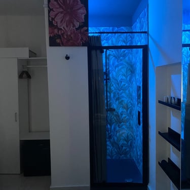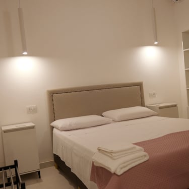 Situata al secondo piano del B&B raggiungibile con scale, offre un'atmosfera calda e una privacy assoluta. Gli ospiti possono godere di una doccia a vista, che aggiunge un tocco di eleganza, oltre a un mini soggiorno per momenti di relax. Il balconcino privato offre uno spazio ideale per sorseggiare una bevanda e godere della tranquillità circostante. Il bagno, a nicchia, completa l'esperienza con funzionalità e comfort.